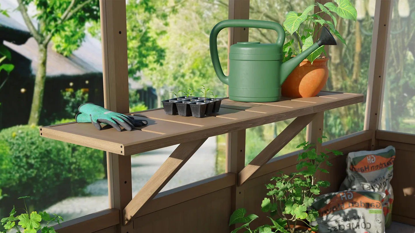 Uanset om de er fritstående, væghængte eller ophængte, skaber de rette hylder et renere, tryggere og mere effektivt miljø. Med færre ting på gulvet minimerer du risikoen for at snuble, undgår overfyldning og bevarer kontrollen over indretningen i drivhuset.
